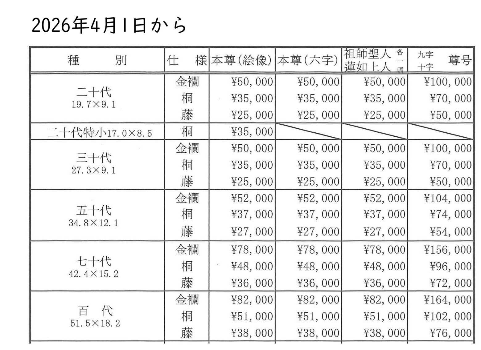 仏具屋さんで掛け軸の大きさをお聞きになり、浄心寺までお申し込みください。